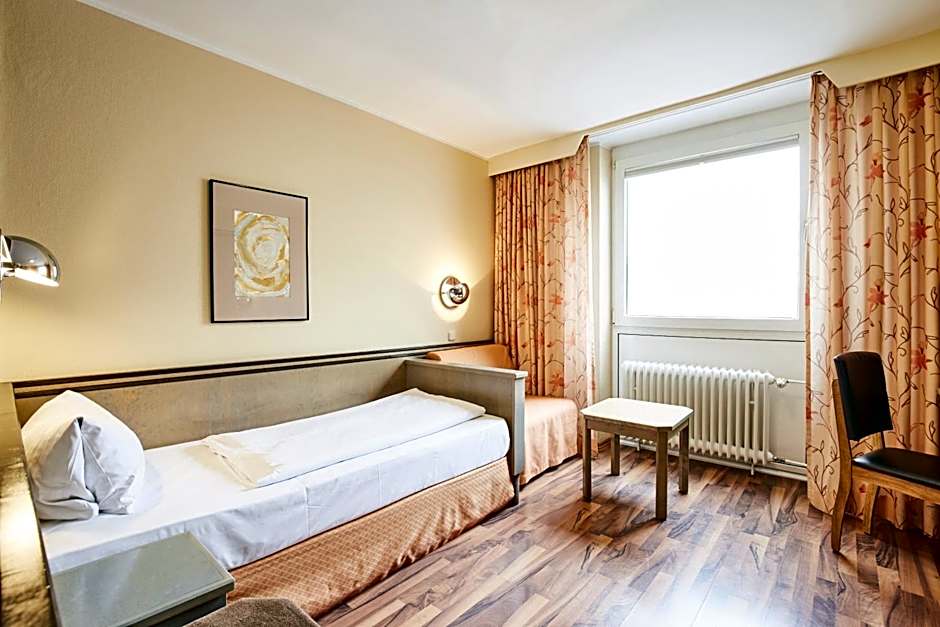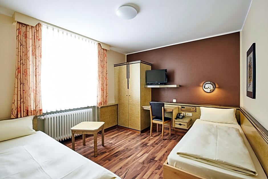 Modernly decorated room features a TV and private bathroom with hairdryer. This room features 2 single beds which can be pushed together to form a double bed or separated as two single beds.